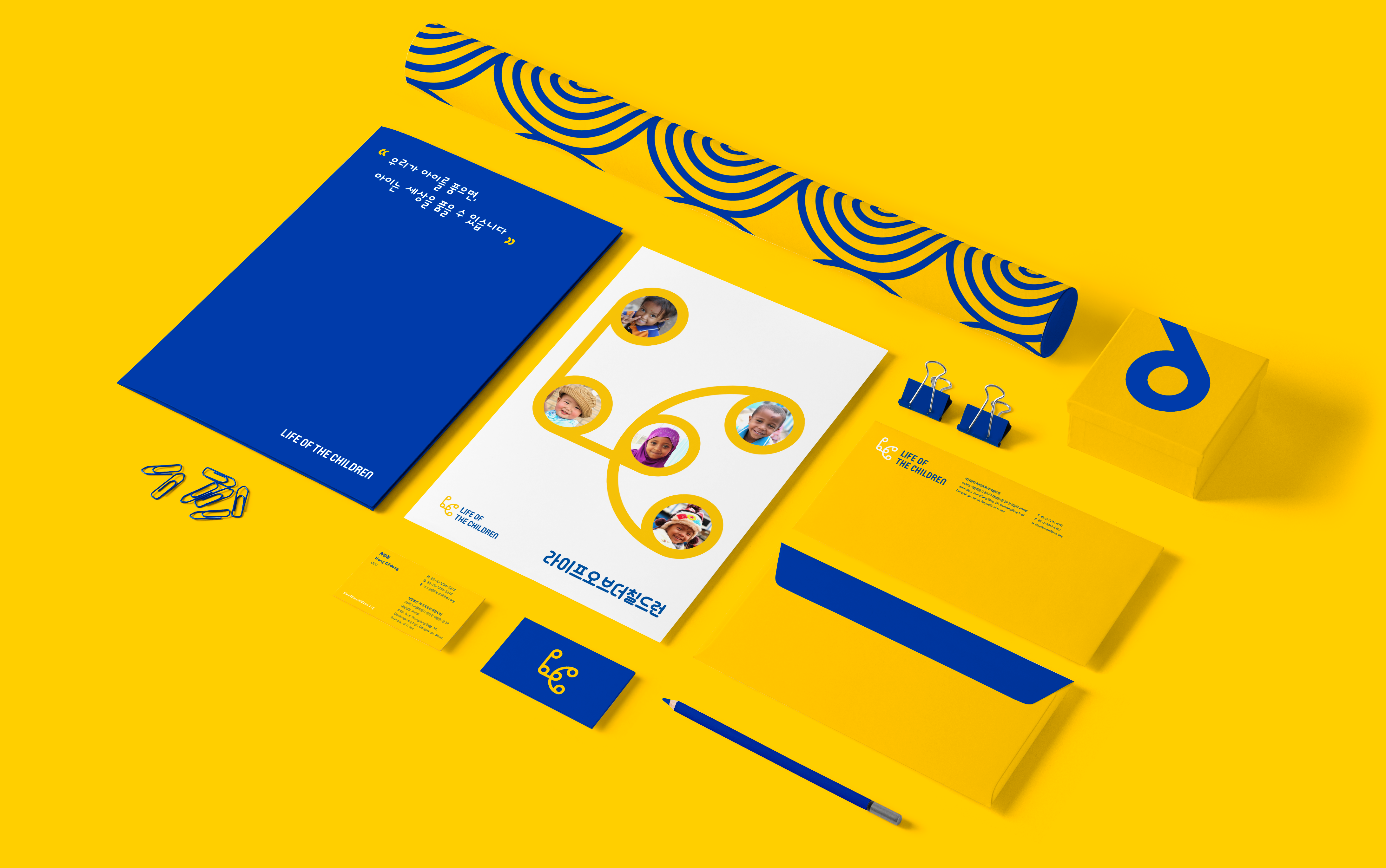 수많은 비영리단체 중에서 새로 태어난 비영리조직, 어떻게 차별성을 드러낼 수 있을까요? 아동전문 NGO인 라이프오브더칠드런의 리브랜딩 프로젝트는 바로 이 질문에서 시작했습니다. ‘소외되고 고통받는 아이들이 한 생명으로서의 존엄성을 회복하고 스스로 꿈을 품고 자라나도록 돕는다.’라는 미션에 집중하여 ‘품다(embrace)’라는 컨셉으로 심볼, 그래픽모티브, 컬러, 슬로건 등 브랜드 아이덴티티를 정립했습니다. 유사 기관들이 기존에 사용하지 않았던 컬러와 분위기를 사용하여 차별성을 강조했습니다.