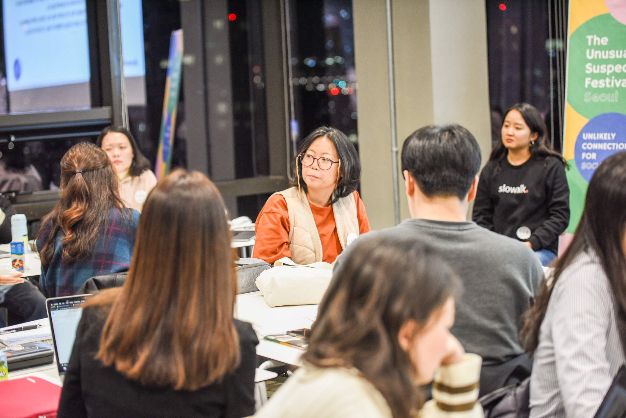 지난해 언서페의 주제는 '모-두를 위한 도시(포용도시)'였어요. 슬로워크가 포용도시에 대해 무엇을 이야기할 수 있을지 감이 잡히지 않아 처음엔 세션 참가를 망설였습니다. 그러던 중에 세션을 준비하는 콜라보레이터가 모여 아이디어를 교환하는 자리가 열렸는데, 많은 분들의 생각을 듣다가 문득 '우리의 이야기는 누가 전해주지?' 하는 생각이 들었어요. 그 생각은 곧장 '세상은 정말 모두의 이야기를 잘 전하고 있을까?'하는 의문으로 이어졌습니다. 바로 이 작은 호기심 덕분에 판을 키울 수 있었던 거죠.