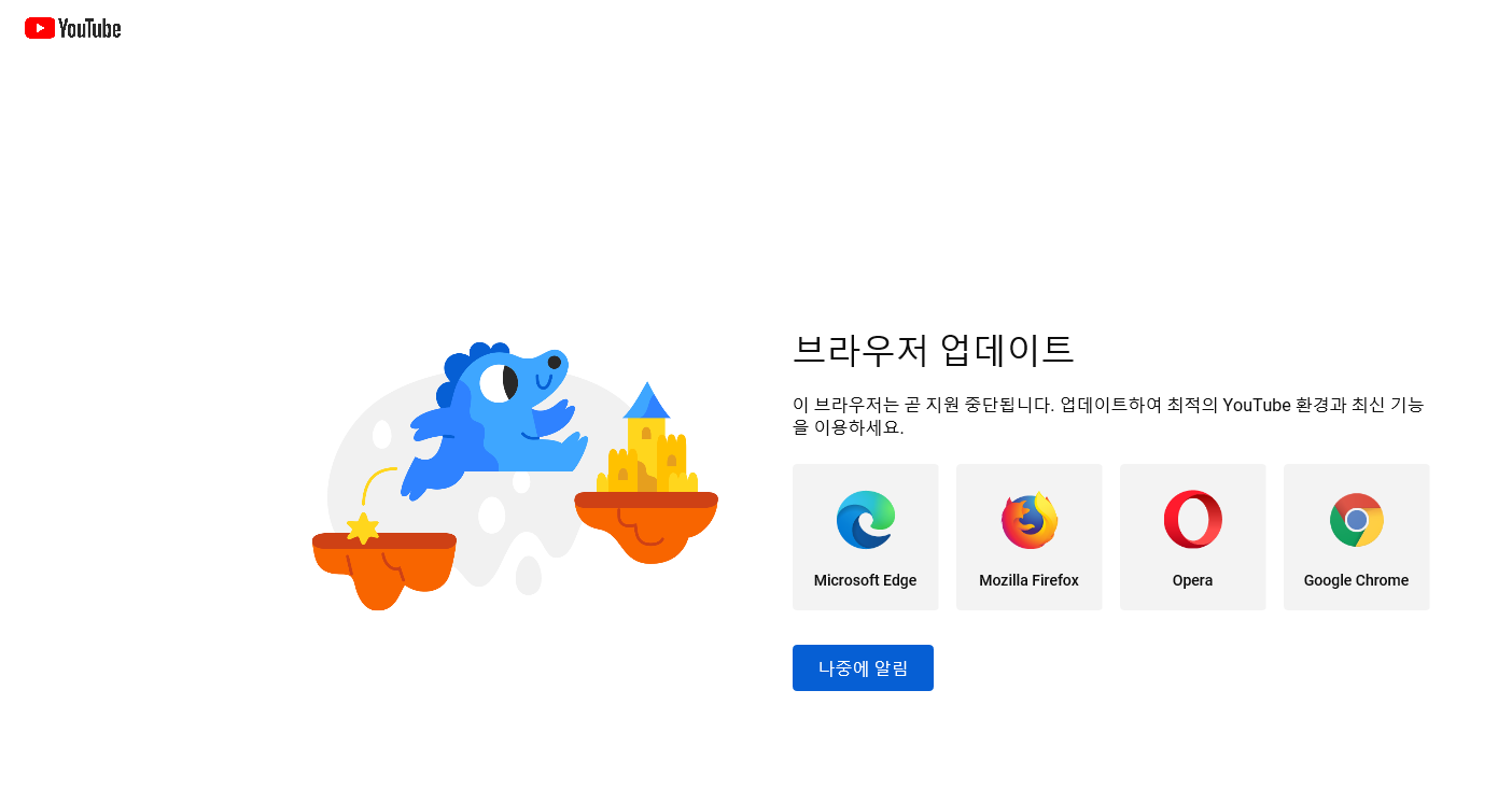 -유튜브, 최신 UI 호환 위한 브라우저 업데이트 안내