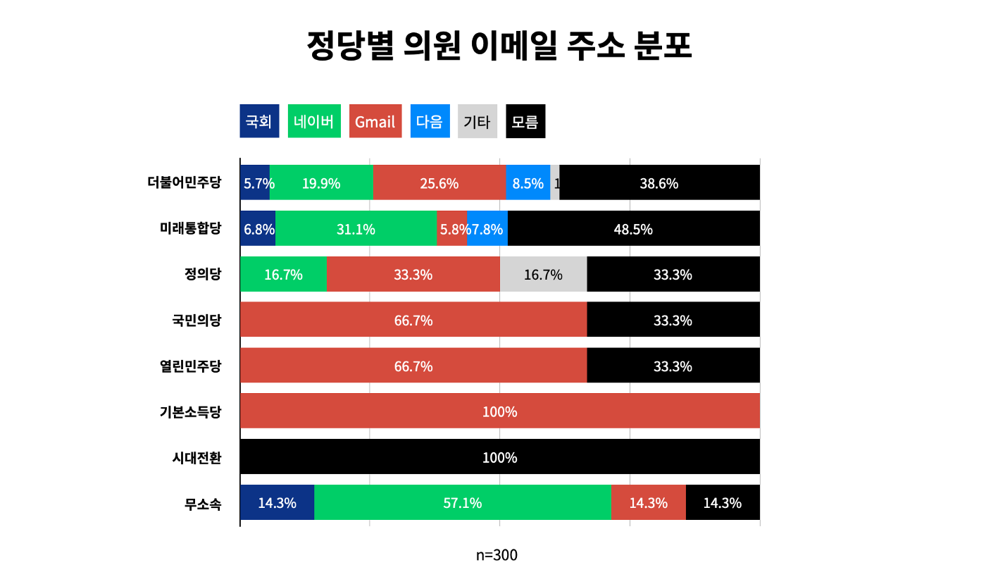 21대 국회의원 300명 이메일 주소 전수조사 결과